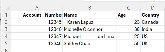 Step 1: Strip those White Spaces around Rows, Reduce 2 or more spaces to single space within a name, and capitalize each word